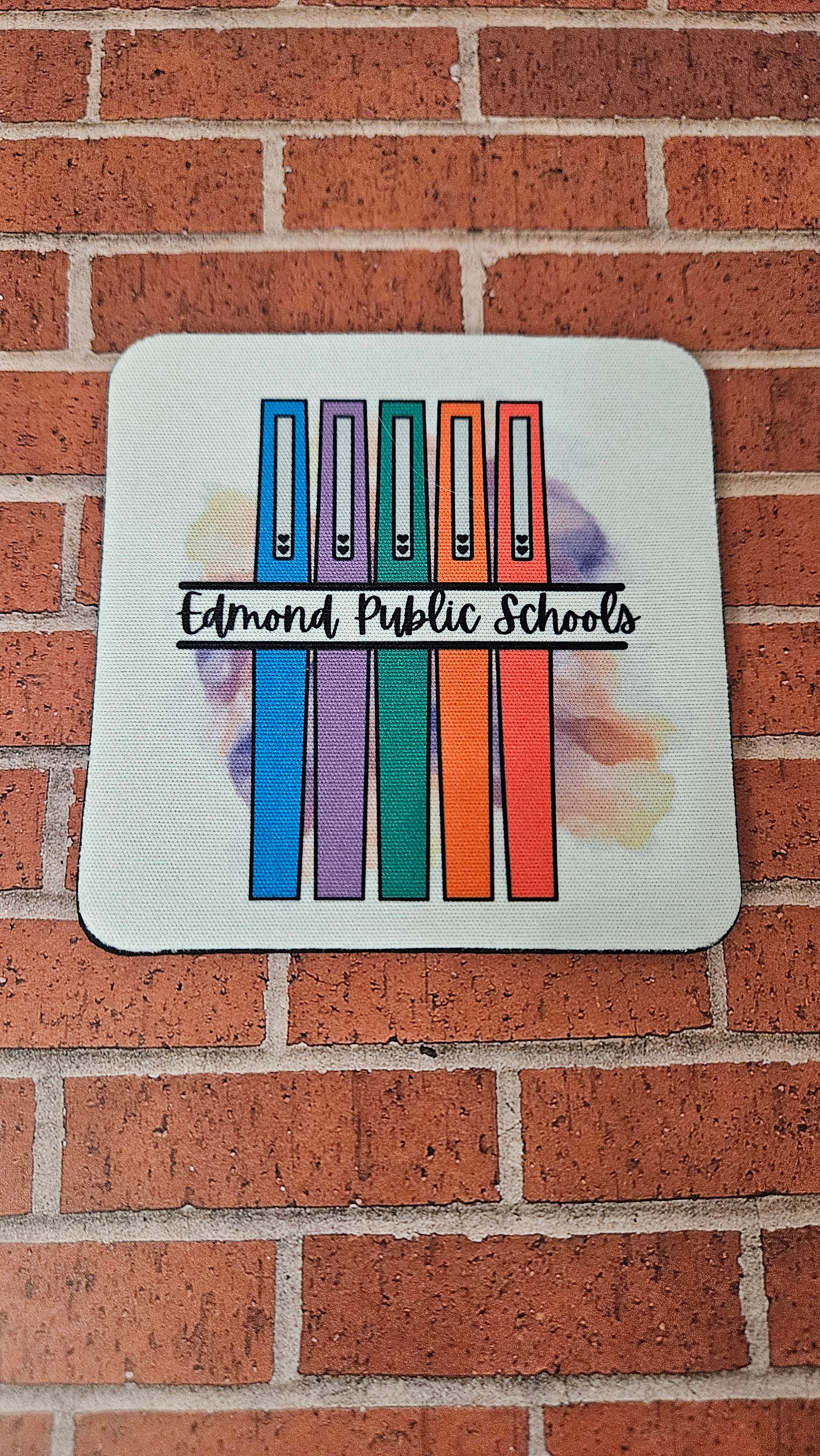 Celebrate school spirit with these soft coasters featuring the Edmond Public School logo and colors. Made from durable, cushioned material, these coasters protect your surfaces while showing off pride for Edmond Public School. The design includes the school’s emblem prominently displayed against a clean, vibrant background in the school’s signature colors. Perfect for classrooms, offices, or at-home use, these coasters are both functional and a great way to support and represent Edmond Public School every day.